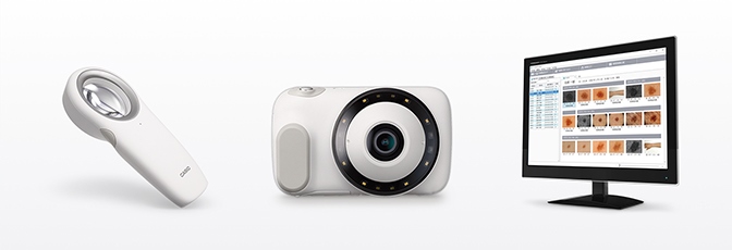Камера, впервые представленная в Японии в 2019 году, может делать обычные фотографии, а при непосредственном прикосновении объектива к коже - снимки очень крупным планом с помощью того же объектива. Она разработана таким образом, чтобы быть гораздо более легкой и простой в управлении, чем другие тяжелые, громоздкие дерматологические камеры, которые часто требуют использования нескольких объективов или устройств.