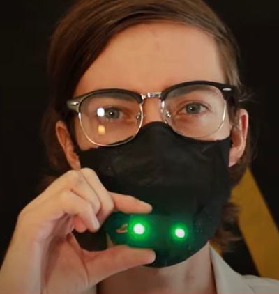 Такая конструкция маски не только более удобна для пользователя, но и гарантирует отсутствие запотевания очков, чем характеризуются традиционные маски. Маска также легко поднимается для еды и питья и включает в себя то, что разработчики назвали "блоком голосового визуализатора". Это небольшая коробочка со светодиодами, которые начинают светиться, когда владелец маски говорит, что облегчает другим членам окружающей его группы понимание того, кто именно говорит.