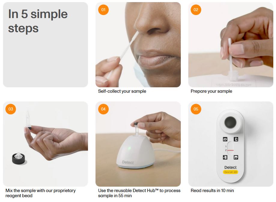 Тесты Detect ищут генетический материал вируса, подобно ПЦР-тестам, которые отправляются в лаборатории для анализа. Компания присоединилась к нескольким другим разработчикам, производящим подобные молекулярные тесты на дому. Они отличаются от быстрых домашних антигенных тестов, которые ищут белки на поверхности вируса (и могут быть менее точными, чем молекулярные тесты).