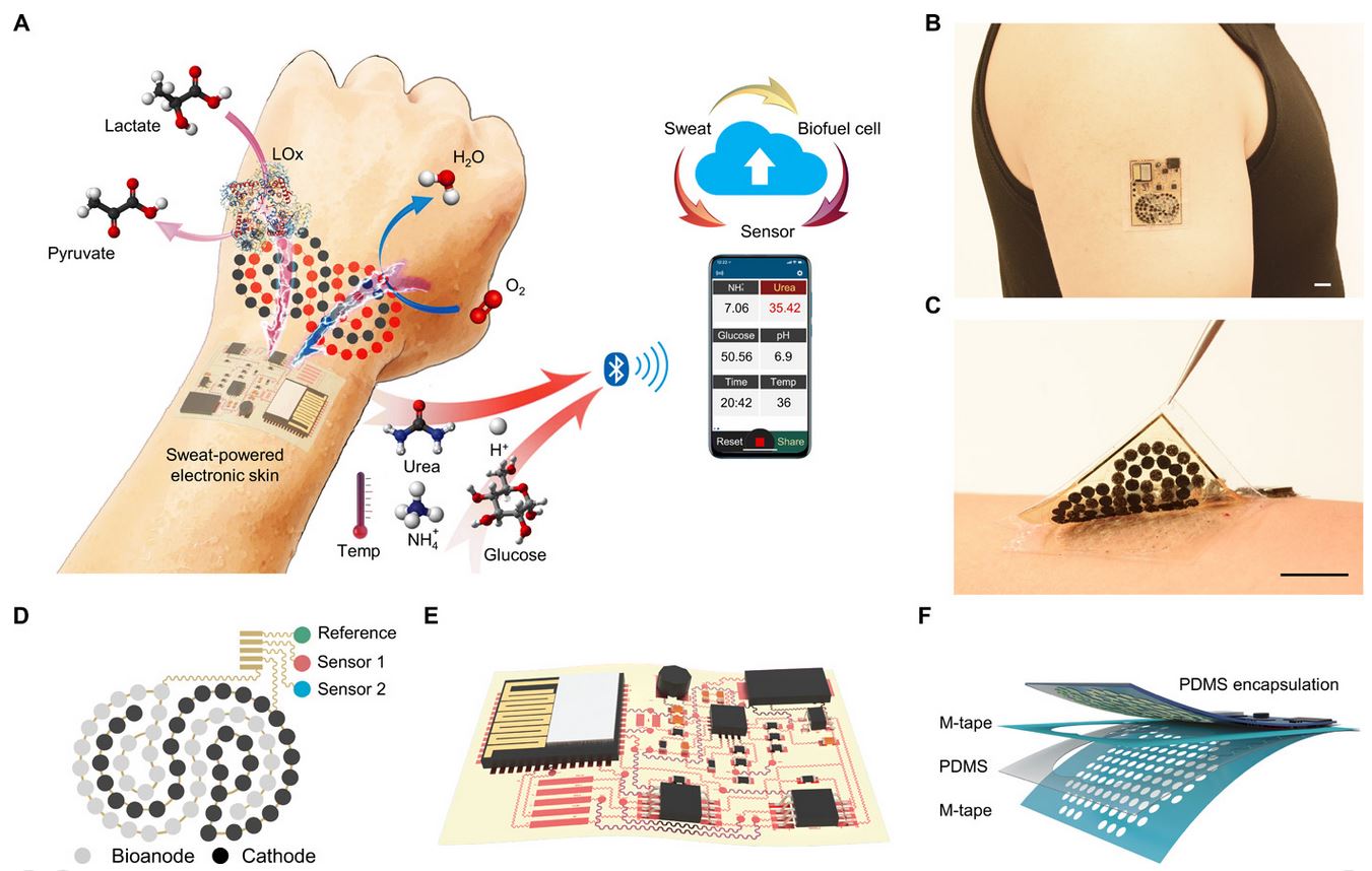Электронная кожа, получающая электропитание от пота, обеспечивает мониторинг здоровья