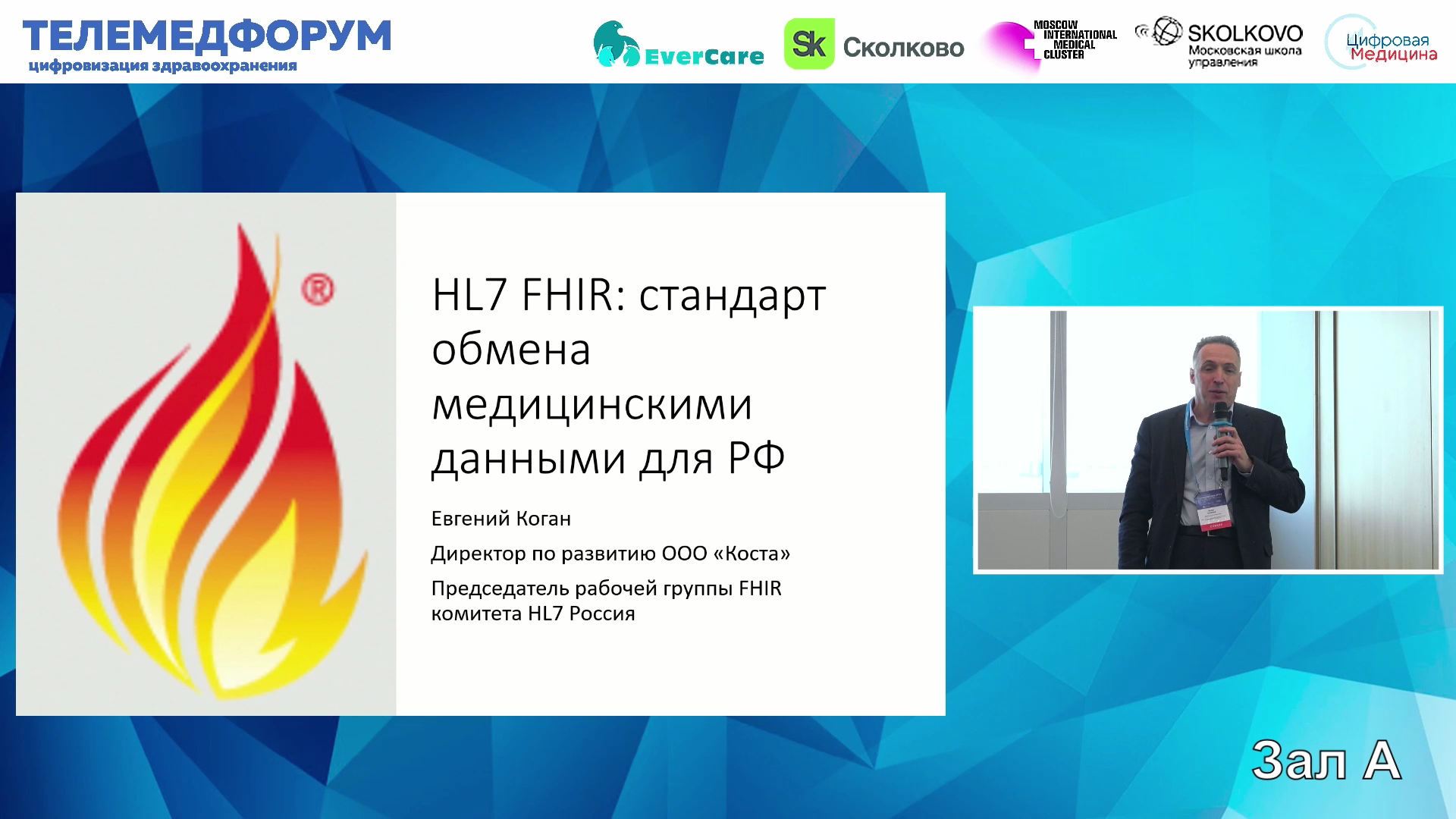 - Евгений Коган, Директор по развитию ООО «Коста», председатель рабочей группы FHIR комитета HL7 Россия.