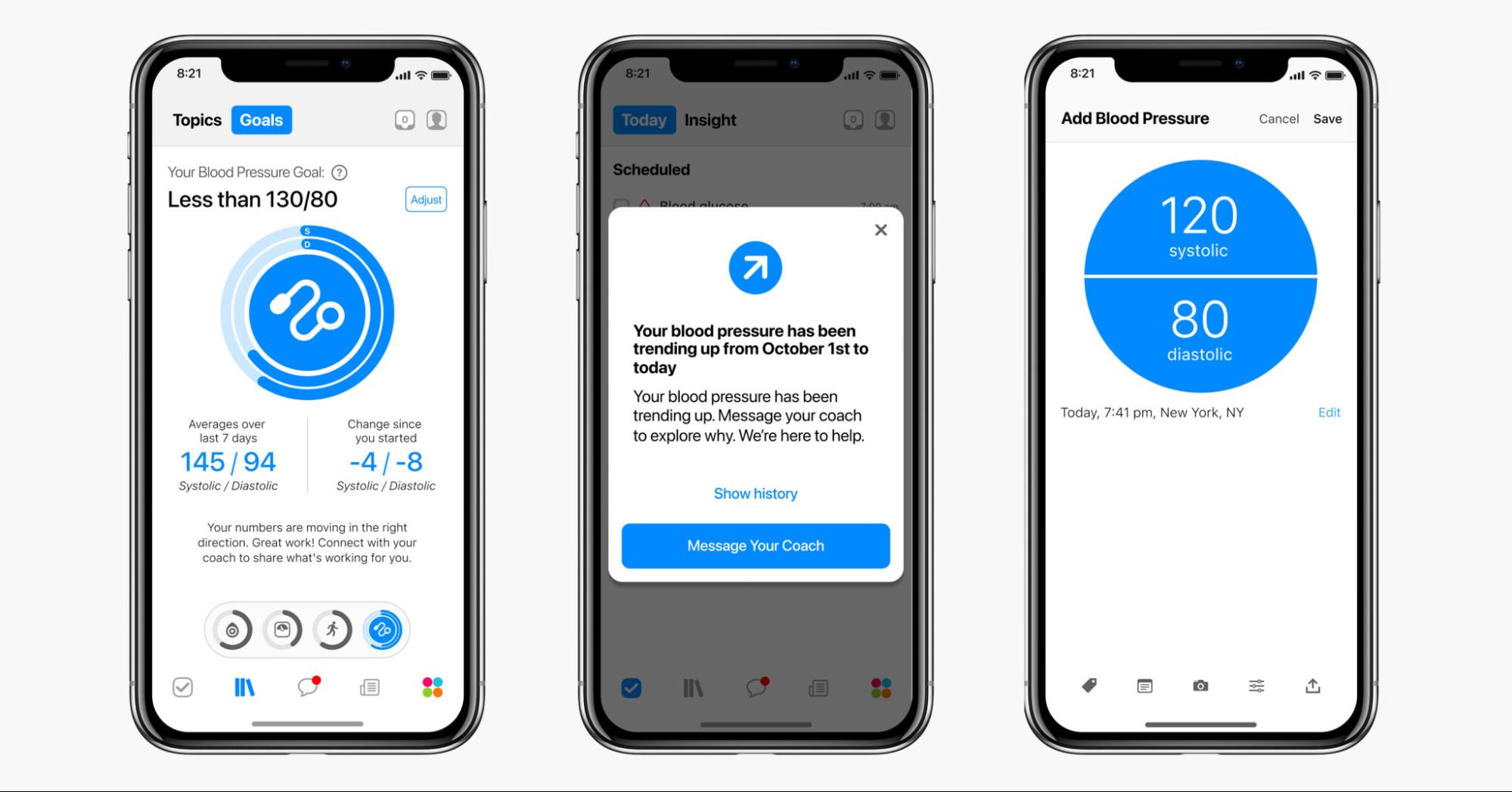 Модуль профилактики сердечно-сосудистых заболеваний One Drop представляет собой персонализированную программу цифрового здравоохранения, которая сочетает в себе подключенные медицинские устройства, биометрические анализы, такие как артериальное давление и уровень глюкозы, индивидуальные тренировки и консультации по здоровью сердца.