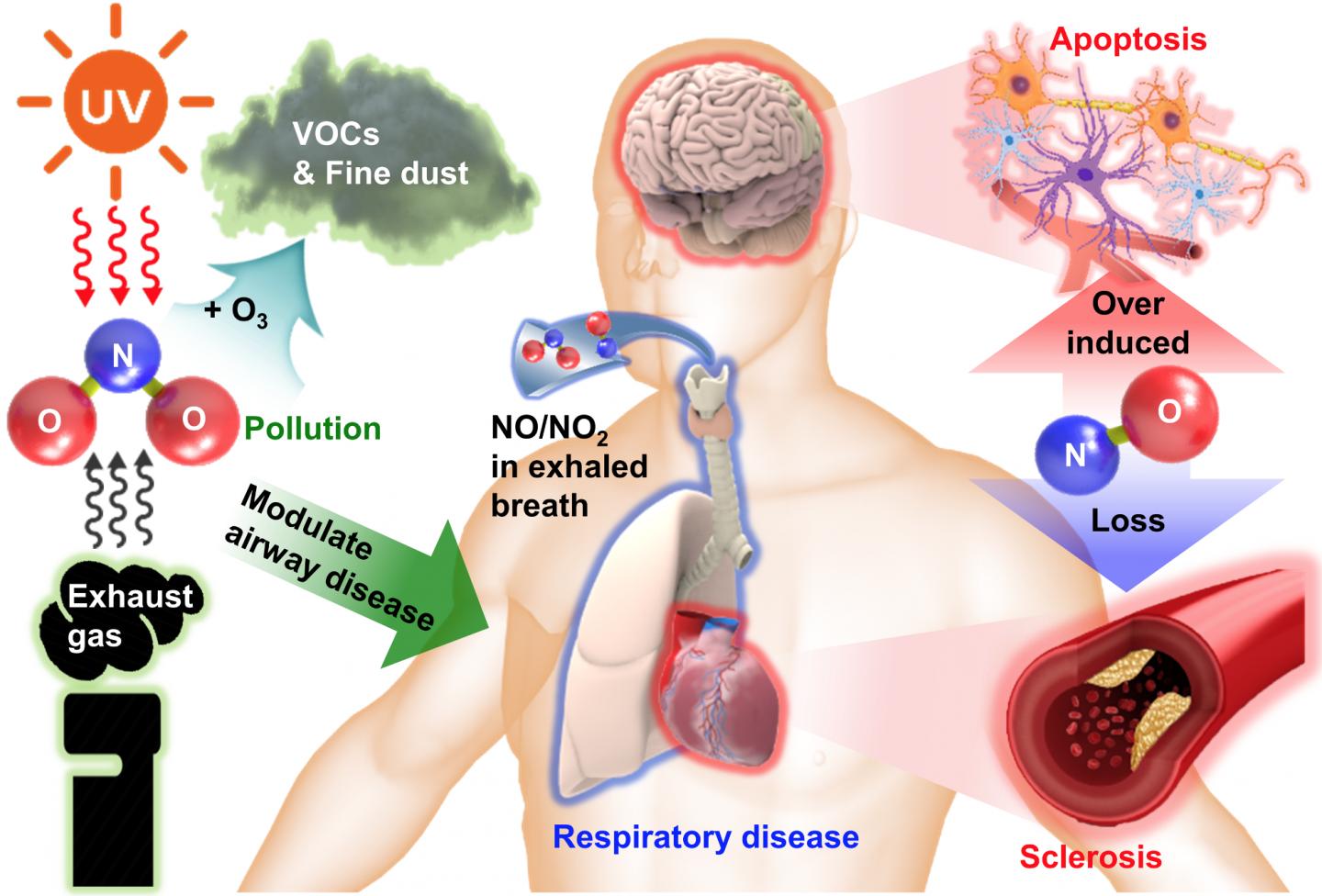 Оксид азота, например, который вырабатывается естественным путем в человеческом организме, играет важную роль в здоровье, поскольку расслабляет или расширяет кровеносные сосуды для улучшения кровообращения, позволяя кислороду и питательным веществам циркулировать в организме. С другой стороны, воздействие диоксида азота из окружающей среды связано с прогрессированием таких состояний, как хроническая обструктивная болезнь легких. При этом оксид азота обладает высокой реакционной способностью и может быть преобразован в диоксид азота при воздействии кислорода.