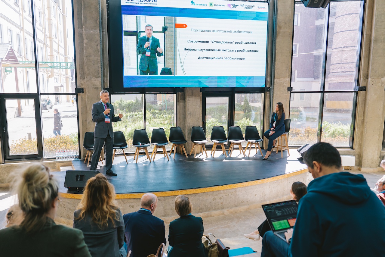 Взлетевшая в последний год в ТОП-3 самых обсуждаемых тем Реабилитация была на форуме представлена практикующими и уже имеющими большой опыт в ней спикерами. Но тон теме задал Александр Шошмин (ФГБУ ФНЦРИ им. Г.А. Альбрехта), который опираясь на классификацию МКФ, аргументированно объяснил, что нозологический подход в реабилитации не применим, только комплексно оценивая статус здоровья пациента с акцентом на возможности его дальнейшей социализации и качество жизни можно добиться существенного эффекта в применении конкретных методик. А Иван Скуридин (РУДН) представил работу нескольких известных экспертов по применению телемедицинских технологий в реабилитации, фактически теперь в открытом доступе есть методическое пособие по созданию сервисов, позволяющих дистанционно работать с пациентами.