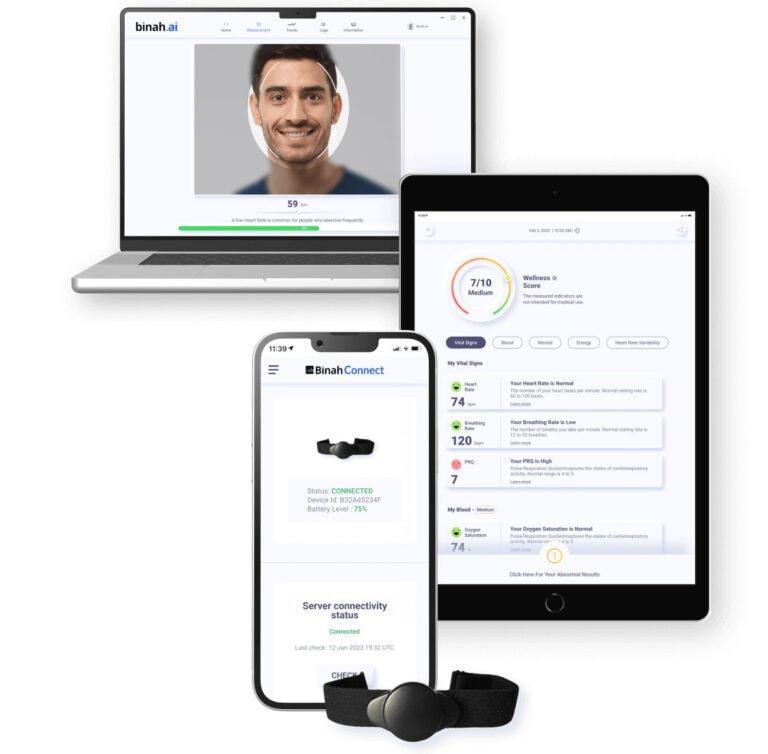 Технология Binah.ai сочетает в себе обработку сигналов и искусственный интеллект для непрерывного высокоточного измерения жизненно важных показателей и позволяет получить Binah Wellness Score — комплексный индекс оценки состояния здоровья и уровня риска. Решение также позволяет проводить точечные измерения с помощью камер смартфонов.