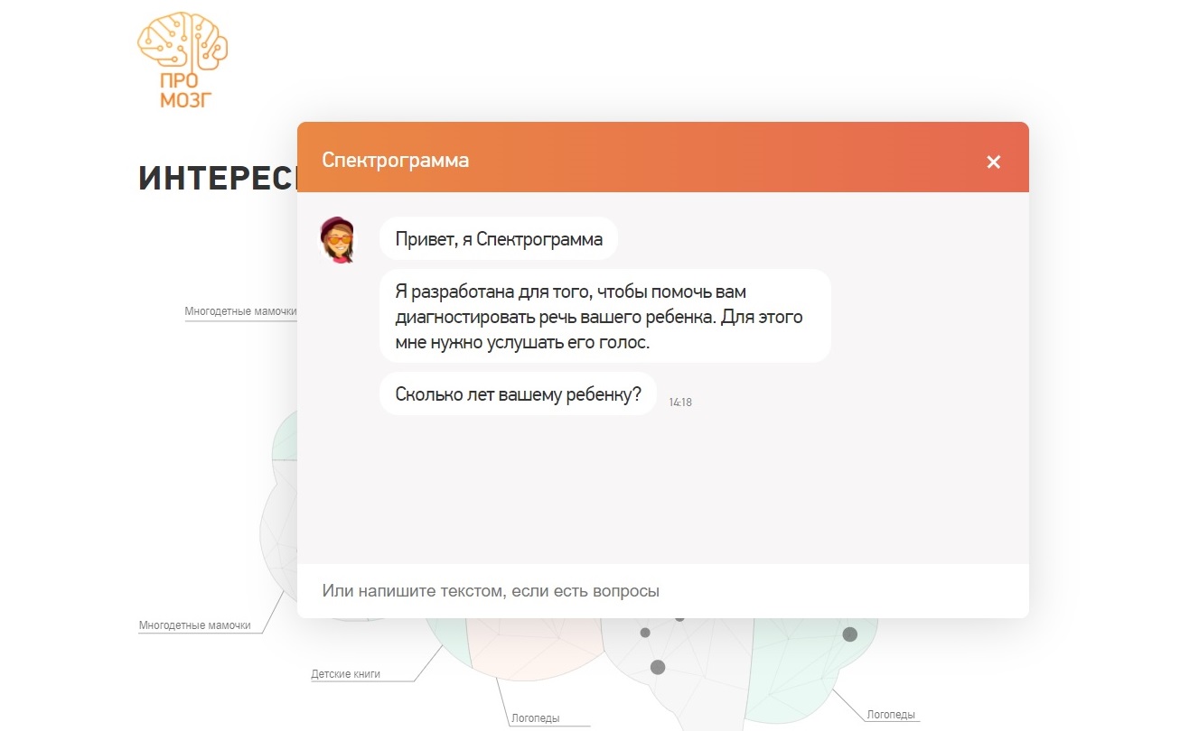 Другая отечественная компания — фармацевтический производитель «Герофарм» в октябре представил систему диагностики «Спектрограмма», которая помогает выявлять нарушения речи у детей от 2 до 6 лет. Все, что нужно сделать родителям — открыть чат-бот и попросить ребенка сказать несколько фраз. Умные алгоритмы отсканируют аудиофайл и сообщат о необходимости посещения врача. Это первая в нашей стране разработка на основе ИИ для распознавания дефектов речи. Точность диагностики составляет более 80% при условии высокого качества записи, уверяют разработчики.