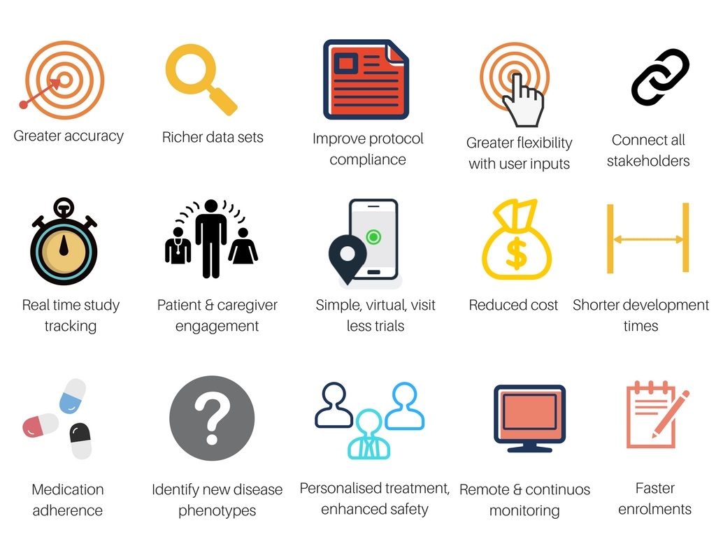 Некоторые компании цифровой медицины, такие как Proteus, сосредоточили свои возможности по применению "умных таблеток" на измерении эффективности медикаментозного лечения для улучшения клинических результатов. Другие, такие как HQ, используют таблетки для мониторинга здоровья пациентов "изнутри", передавая по беспроводной связи данные о температуре внутри тела - измерения, которые могут быть критическими в ситуациях, когда речь идет о жизни или смерти.