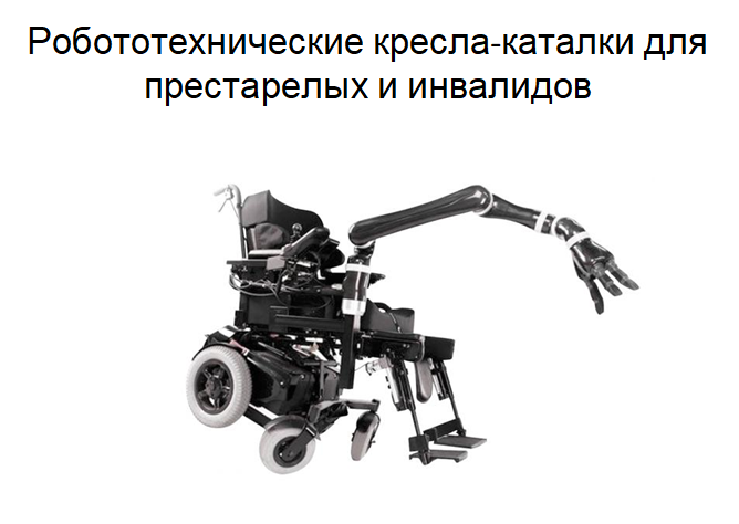 Можно привести в качестве примера кресло-каталку, которое позволяет забираться или спускаться по лестницам. Частично обездвиженные пациенты могут использовать механическую руку, напечатанную, кстати говоря, на 3D принтере. Она может подать стакан воды, лекарства или упереться, схватиться за что-то. Известны приборы, с помощью которых можно восстанавливать функции позвоночника, бедер, коленей.