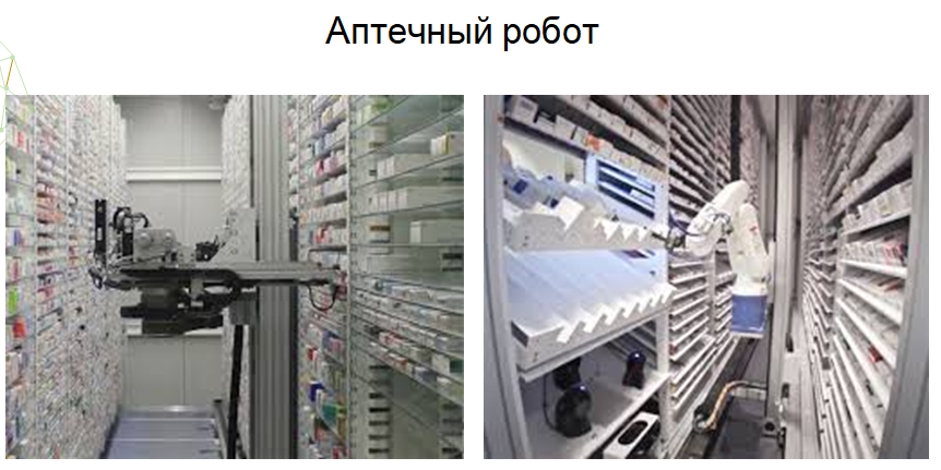 — Аптечные роботы помогают провизорам быстрее выдавать лекарство. В Скандинавии примерно 12 процентов аптек роботизированы. С помощью манипулятора робот сам размечает, расставляет лекарства и потом знает, какие препараты и где лежат.