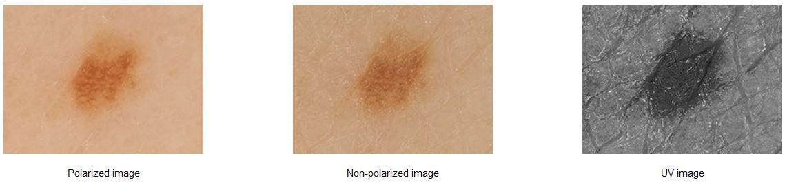 DZ-D100 делает поляризованные снимки, необходимые для подтверждения цвета и структуры внутри кожи, неполяризованные снимки для регистрации поражения на поверхности кожи, а также снимки в ультрафиолетовом диапазоне излучении, на которых четко видны края, включая скрытые пятна и размытые родинки, которые не выделяются при поляризованном свете - и все это одним нажатием кнопки затвора. Поскольку каждое изображение может быть получено под одним и тем же углом, его удобно использовать для сравнения и проверки. Кроме того, это экономит время и усилия специалиста.