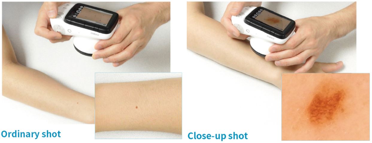 В прошлом при фотографировании кожных поражений обычно делались снимки крупным планом с помощью коммерческой камеры, оснащенной специальным внешним объективом, что делало камеру большой и тяжелой. Кроме того, для получения обычных снимков требовалось время и усилия, в том числе необходимость менять объективы или использовать две отдельные камеры.