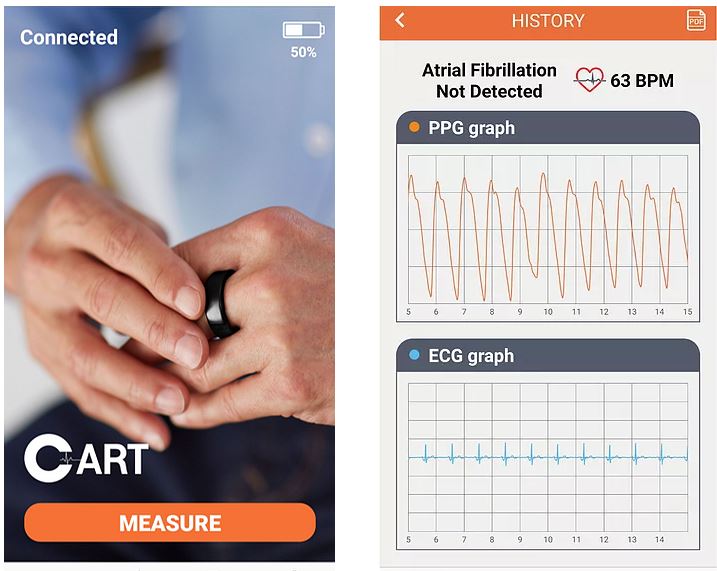 CART-I использует сигналы фотоплетизмографии для измерения частоты сердечных сокращений и выявления фибрилляции предсердий или ее тяжести, а также сигналы электрокардиограммы для предоставления дополнительной информации врачам. Отметим, что встроенный оптический датчик может непрерывно измерять сигналы сердца при ношении кольца без вмешательства пользователя.