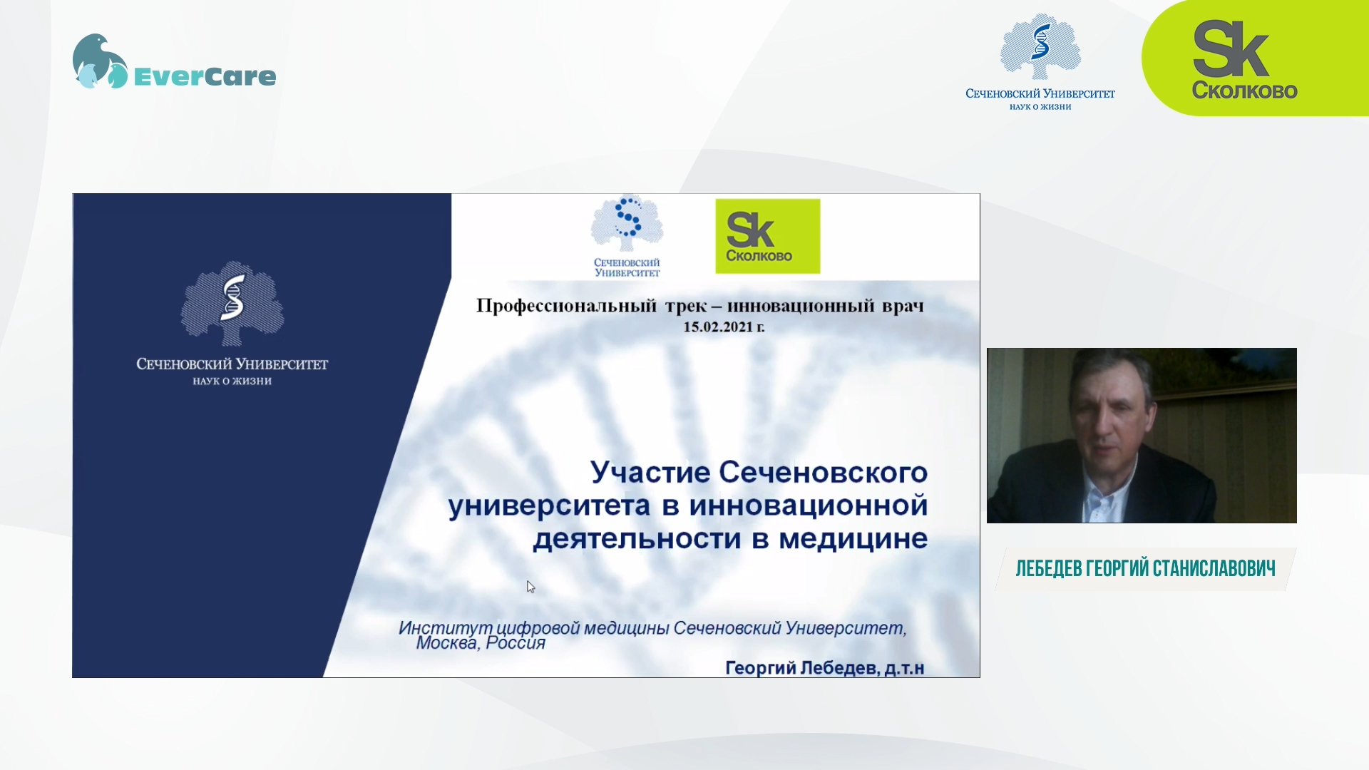 15 февраля 2021 года состоялась онлайн-конференция "Профессиональный трек – инновационный врач", которую провели Сеченовский Университет и Фонд «Сколково».
