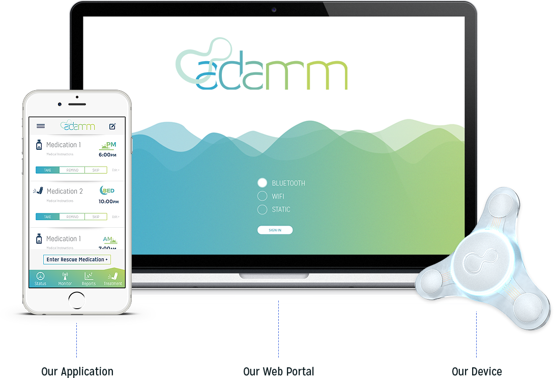Кроме того, пользователи и их родители могут использовать портал, позволяющий отслеживать тенденции изменения симптомов, определять список людей, которые имеют те или иные права использования информации о здоровье пользователя, хранить и просматривать все данные. Врачи, в свою очередь, могут использовать свою собственную веб-систему, которая предоставляет возможность отслеживать состояние сразу многих пациентов, идентифицируемых по номеру устройства Adamm.