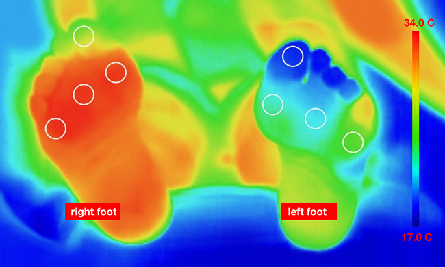 Именно поэтому сегодня несколько компаний специализируется на разработке решениях, связанных с ранним обнаружением повреждений на ногах - осложнениях при диабете, которые могут привести к ампутации. В процессе образования диабетических язв задействованы много разных факторов, включая повреждение нервов, что приводит к тому, что пациент перестает чувствовать небольшие повреждения на своих ступнях. Здоровый человек может изменить свое движение или поменять обувь, но пациент с поврежденными из-за диабета нервами не заметит боль. А повторяющиеся повреждения со временем могут привести к образованию язвы. Именно поэтому раннее обнаружение может помочь предотвратить образование язвы или ухудшение состояния стопы.