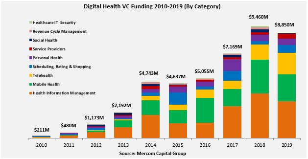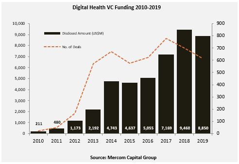 Финансирование цифрового здравоохранения сокращается, отмечается в еще одном отчете о инвестировании в эту отрасль, на этот раз от Mercom Capital Group. Согласно последнему отчету компании, в 2019 году финансирование цифрового здравоохранения составило 8,9 млрд долларов в рамках 615 сделок - это меньше, если сравнивать с $9,5 млрд и 698 сделками, зарегистрированными в 2018 году.