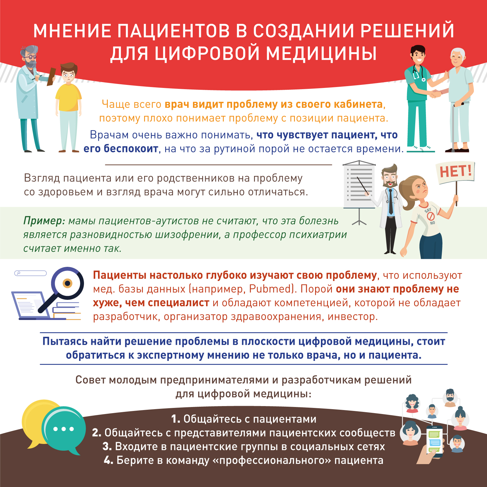 Поэтому, когда мы пытаемся найти решение проблемы в плоскости цифровой медицины, стоит обратиться к экспертному мнению не только врача, но и тех, на кого ориентировано это решение – пациентов.