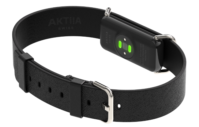 Монитор кровяного давления швейцарской компании Aktiia - это браслет, надеваемый на запястье, который анализирует скорость и отражение пульсовой волны для определения артериального давления.
