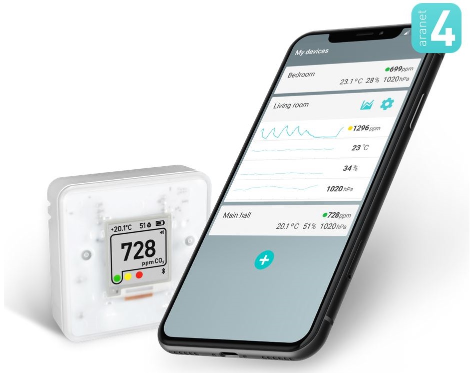 Aranet4 использует самую современную технологию недисперсионных инфракрасных сенсоров для точных измерений CO₂. Он оснащен сверхэффективным E-Ink дисплеем, который продлевает срок службы батарей до 2 лет (в устройстве используются две батареи типа AA).