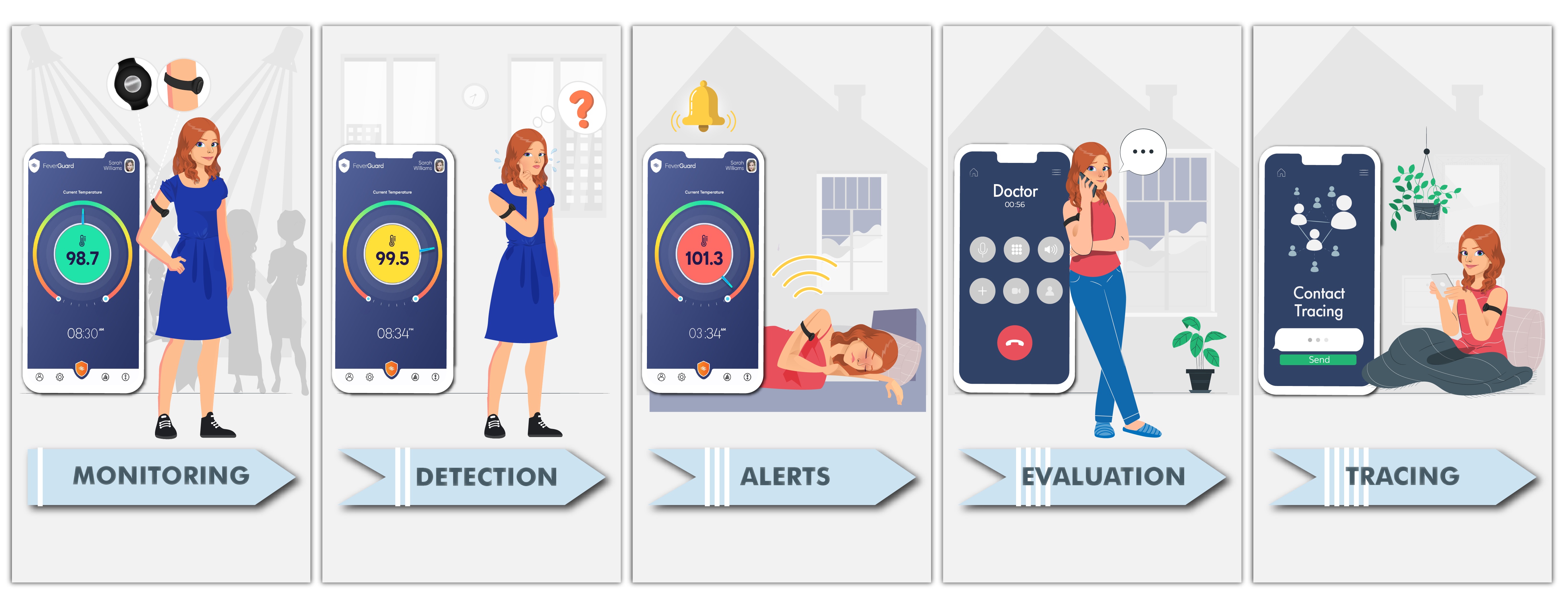 Воспользоваться преимуществами FeverGuard могут частные лица, работодатели, медицинские организации и лица, ухаживающие за больными. Точное раннее обнаружение повышения температуры позволяет им незамедлительно принять меры по сдерживанию распространения инфекции, получить доступ к оперативной медицинской помощи и включить отслеживание контакта. Эти действия могут помочь контролировать пандемию COVID-19 и сдерживать вспышки сезонного гриппа и других инфекций, которые подвергают риску семьи, предприятия, лиц, ухаживающих за больными, и местные сообщества.