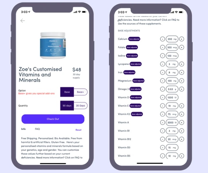 В свое время компания начала свою деятельность с разработки индивидуальных планов приема добавок и проведения генетических исследований здоровья, которыми можно управлять с помощью собственного мобильного приложения-"помощника".