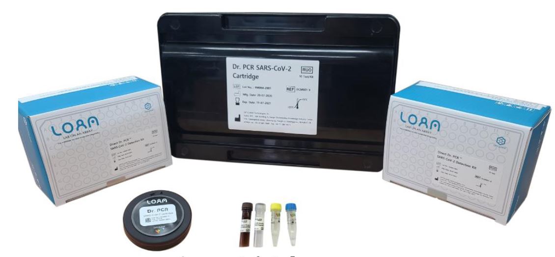 Тестовый набор SARS-CoV-2 Detection Kit включает в себя одноразовые картриджи (30 шт. в наборе), а также праймеры и специальные жидкости.