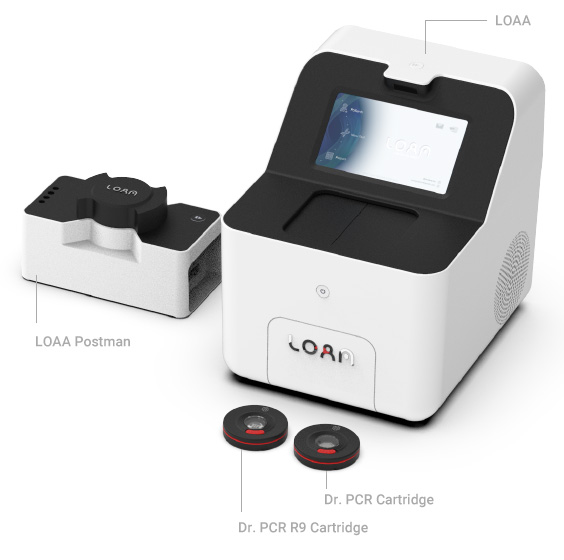 Система состоит из двух частей - собственно анализатора LOAA Analyzer и устройства для загрузки образца в картридж LOAA POSTMAN Sample Loader, которое позволяет поместить образец в картридж и начать работу буквально за 2 минуты.