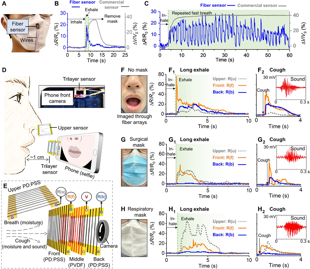 Разработчики использовали такой волоконный датчик для проверки количества влаги, просачивающейся при дыхании через защитную маску на лице при таких респираторных состояниях, как нормальное дыхание, учащенное дыхание и симулированный кашель. Волоконные датчики значительно превосходили аналогичные коммерческие сенсоры, особенно при мониторинге быстрого дыхания, воспроизводящей одышку.