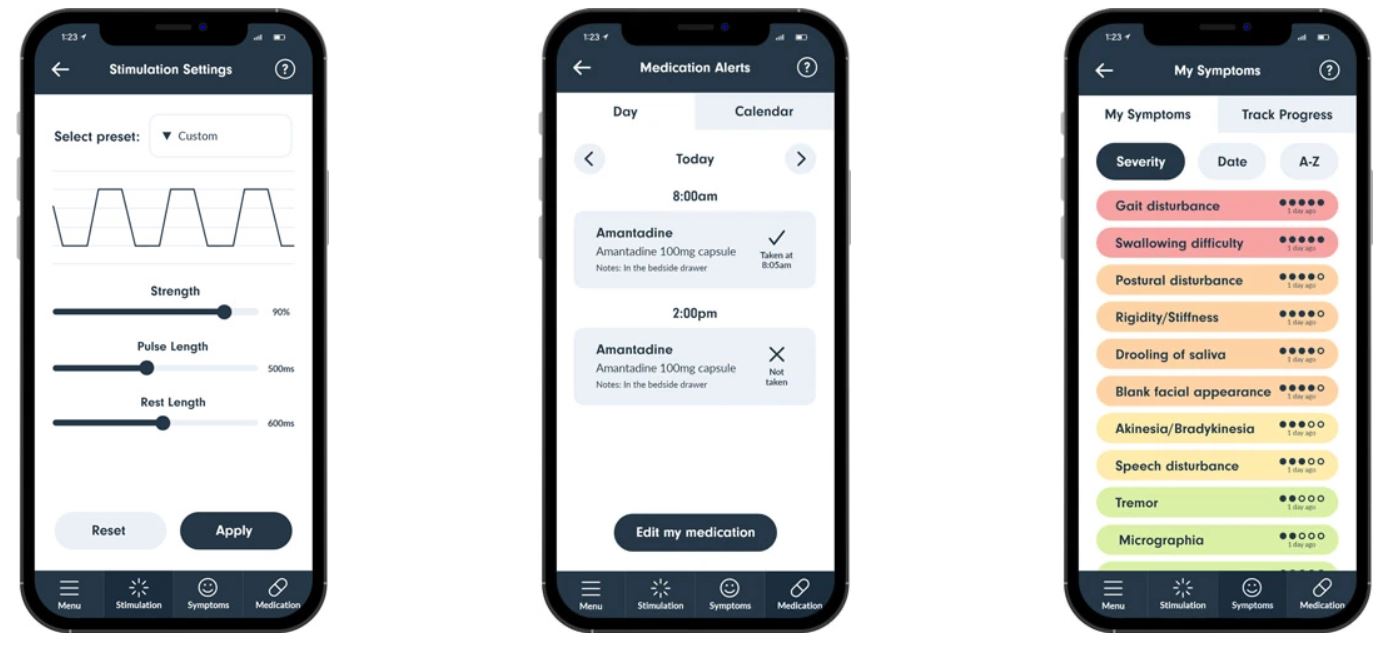 В технологии также используются сигналы, помогающие пациентам, склонным к "застыванию", увеличить свою подвижность. Как безлекарственный, неинвазивный метод лечения, технология имеет много привлекательных сторон для пациентов, которые могут захотеть попробовать ее, и в настоящее время она доступна в Великобритании, а в ближайшее время планируется и ее продажи в других странах.