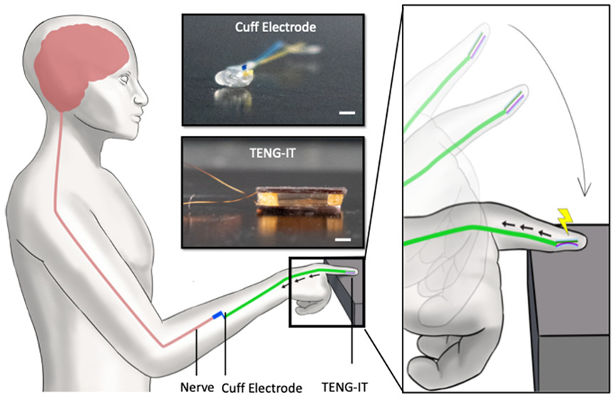 Исследователи разработали датчик, который можно имплантировать на поврежденный нерв под кончиком пальца и соединить с другим нервом, который функционирует нормально. Устройство состоит из двух крошечных пластин размером менее половины сантиметра. Когда эти пластины вступают в контакт друг с другом, они высвобождают электрический заряд, который передается на неповрежденный нерв.