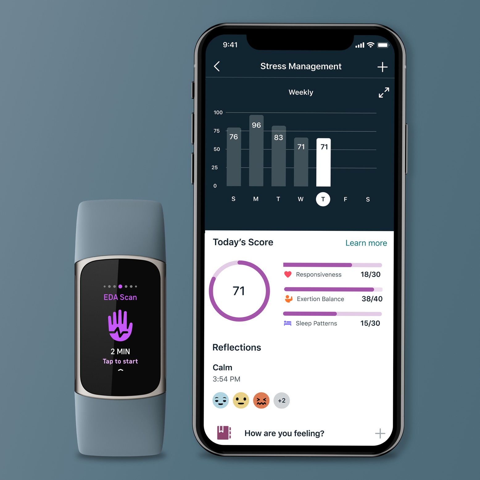 Fitbit включил в Charge 5 многие из возможностей мониторинга здоровья, доступных в других устройствах, включая измерения частоты сердечных сокращений, ЭКГ, частоты дыхания, изменения температуры кожи, уровня кислорода в крови (SpO2), качества сна и VO2 Max. Фитнес-браслет дает рекомендации по минутам активной зоны, имеет встроенный GPS и оснащен датчиком EDA, который используется для оценки стрессоустойчивости.