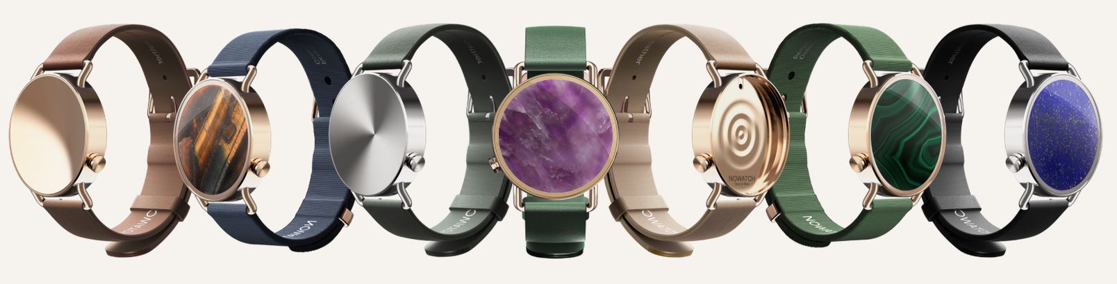 Устройство Nowatch предлагает другой подход. Он обеспечивает многие из обычных функций отслеживания состояния здоровья, но, вместо того чтобы использовать обычный дисплей, как в устройствах Apple, Google и Samsung, компания заменила его различными визуально привлекательными материалами.