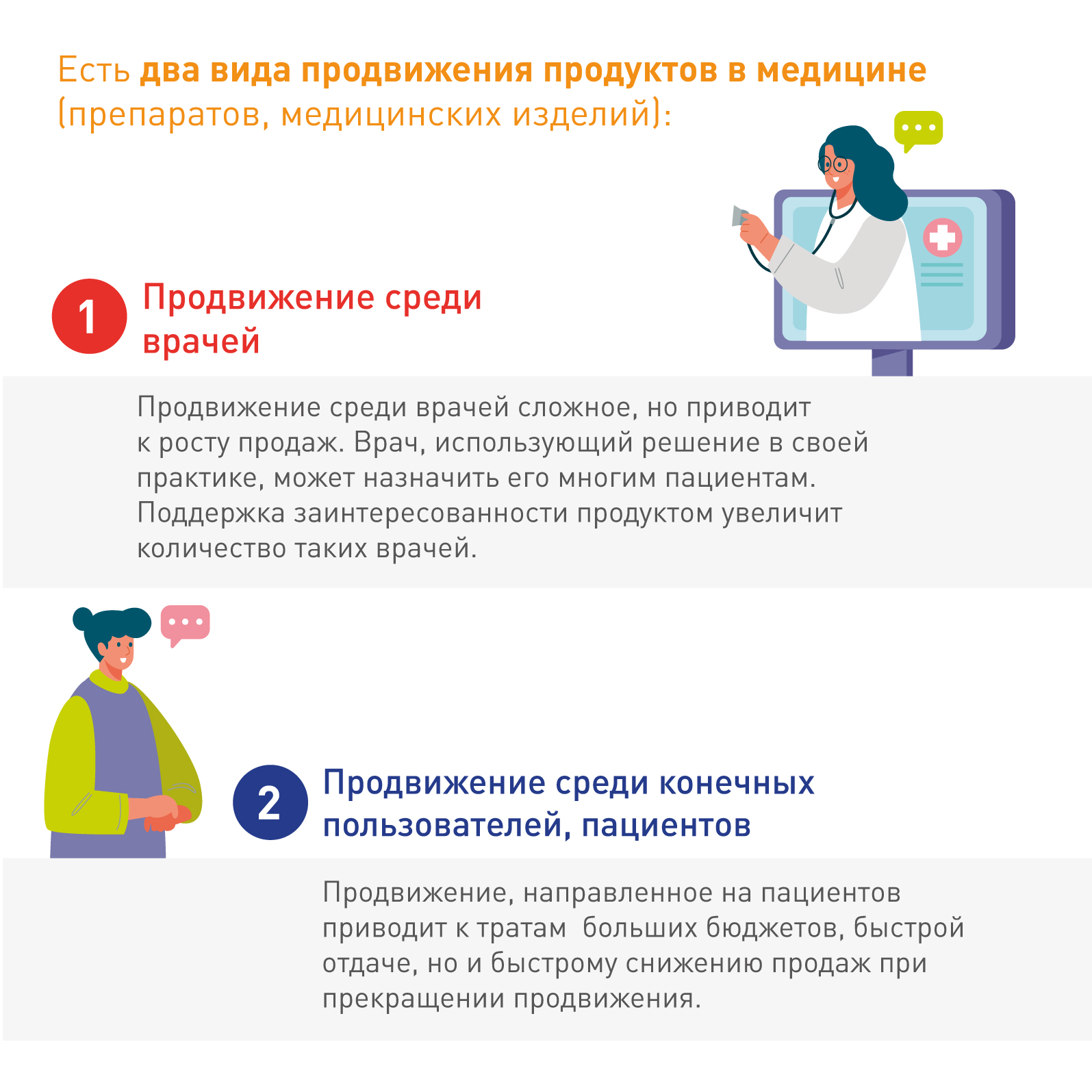 Есть 2 вида продвижения продуктов в медицине (препаратов, медицинских изделий):