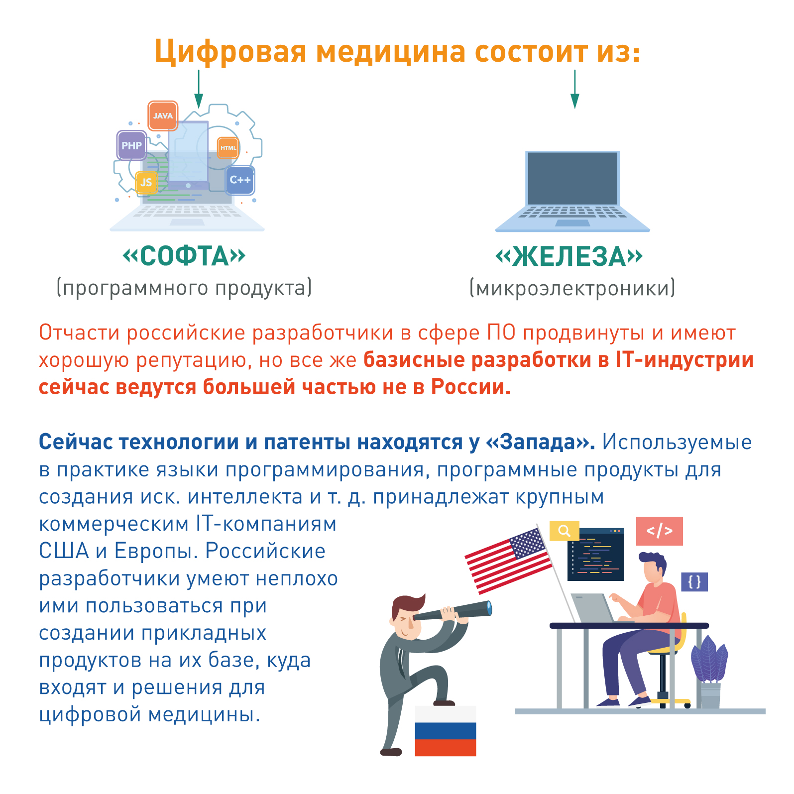 Давайте вместе взглянем на эти две составляющие цифровой медицины с позиции возможностей нашей страны создавать и развивать свои решения в этом направлении.