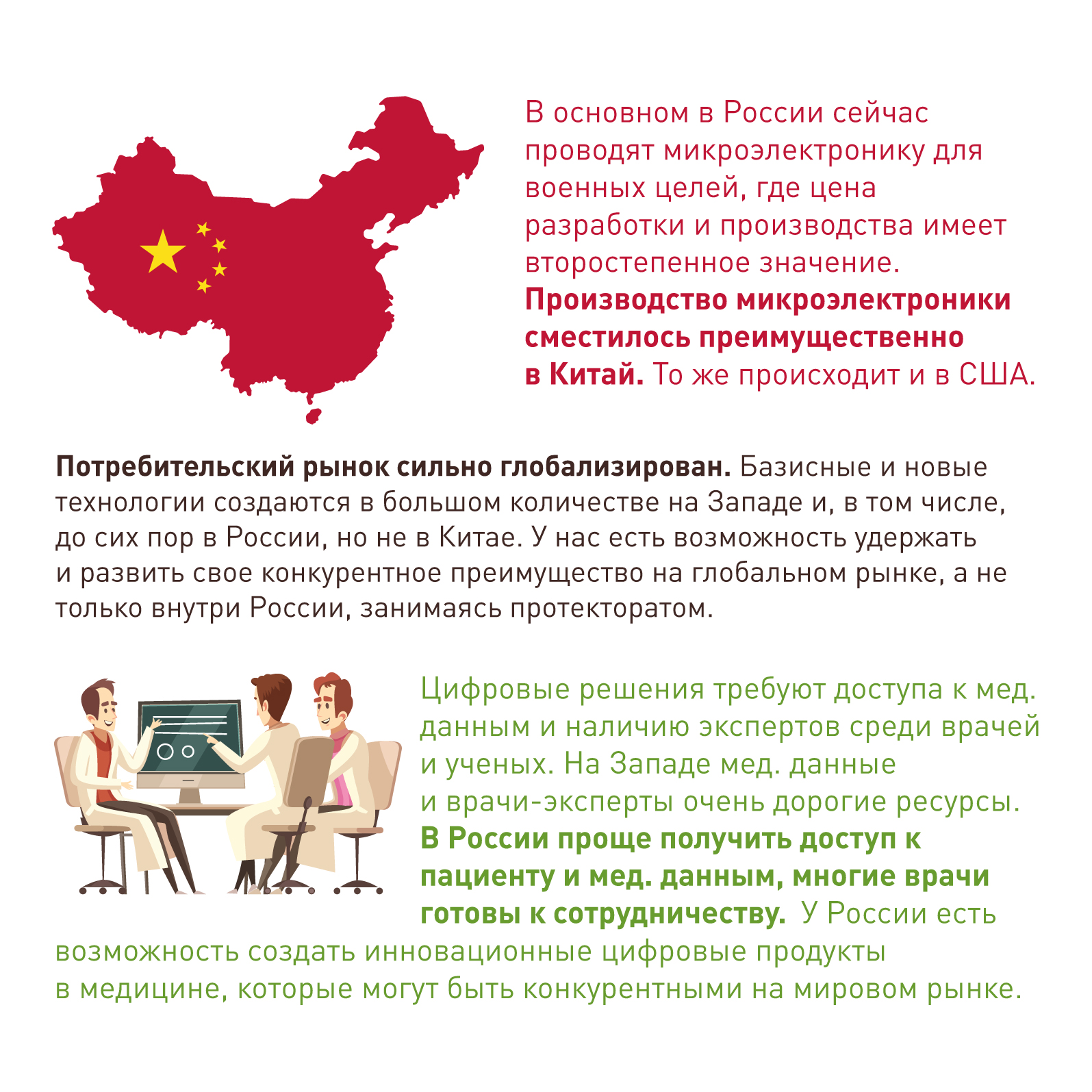 В связи с этим, у России, как мне кажется, есть возможность создать инновационные цифровые продукты в медицине, которые могут быть конкурентными на мировом рынке.
