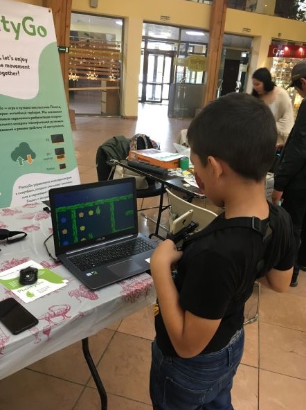 Мы адаптировали классическую механику игры Pac-Man к нашей первой игре. Это помогает игре быть комфортной для детей с различными уровнями физического и когнитивного развития. Игра управляется акселерометром в смартфоне, который считывает наклоны тела и перемещает Плэнти по игровой локации. Смартфон с запущенным приложением устанавливается в специальный крепеж, а игра транслируется через облачный сервер на экран ПК, планшет или Смарт-ТВ.