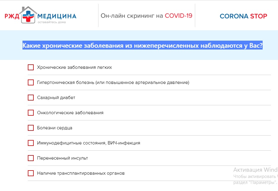 Пройдите онлайн-скрининг на коронавирус с помощью приложения от «РЖД-Медицины» и АО «СОЦМЕДИКА»!