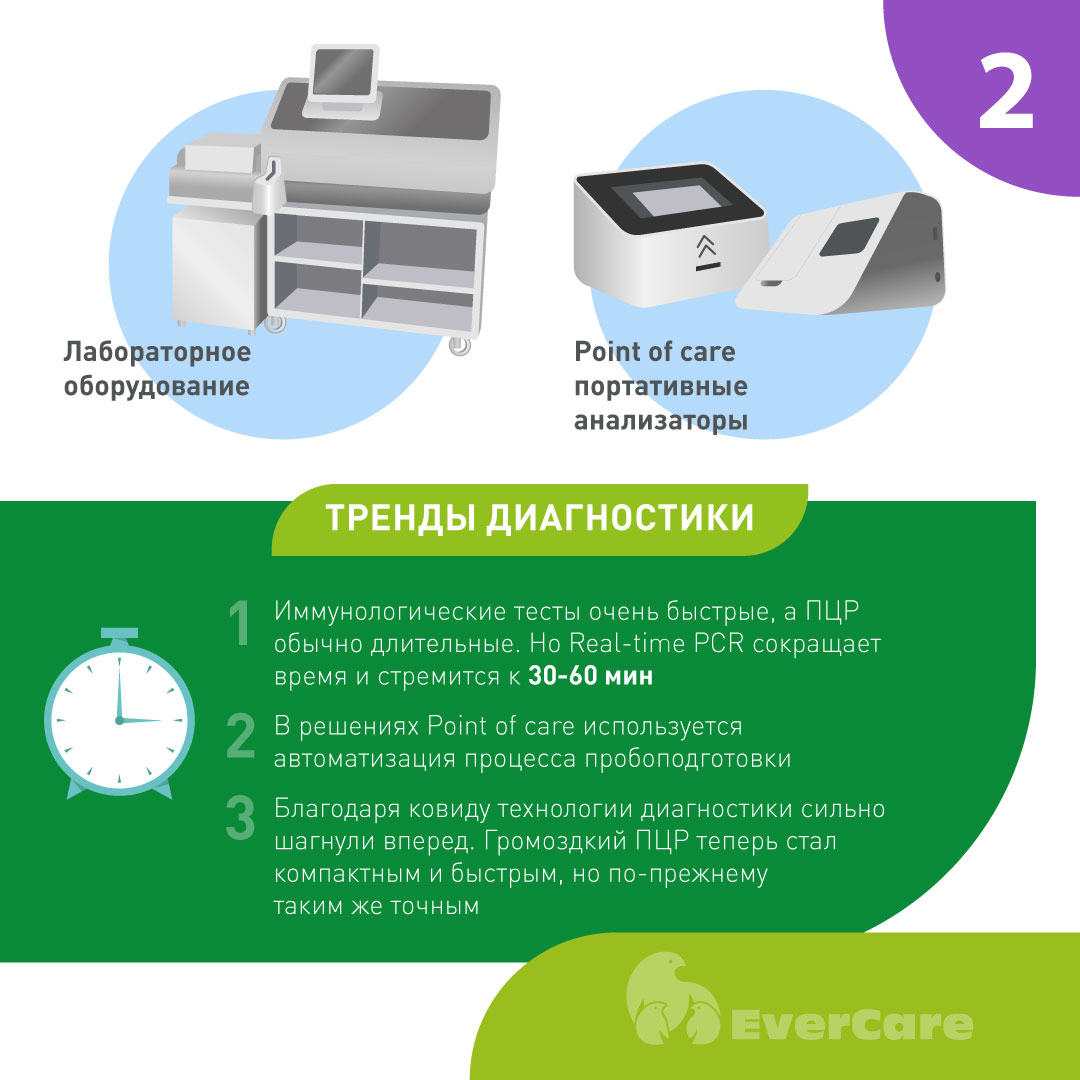 - Тест-системы, различные устройства для диагностики инфекции уменьшаются в размерах и уже не требуют работы в больших лабораториях. Они становятся компактны.