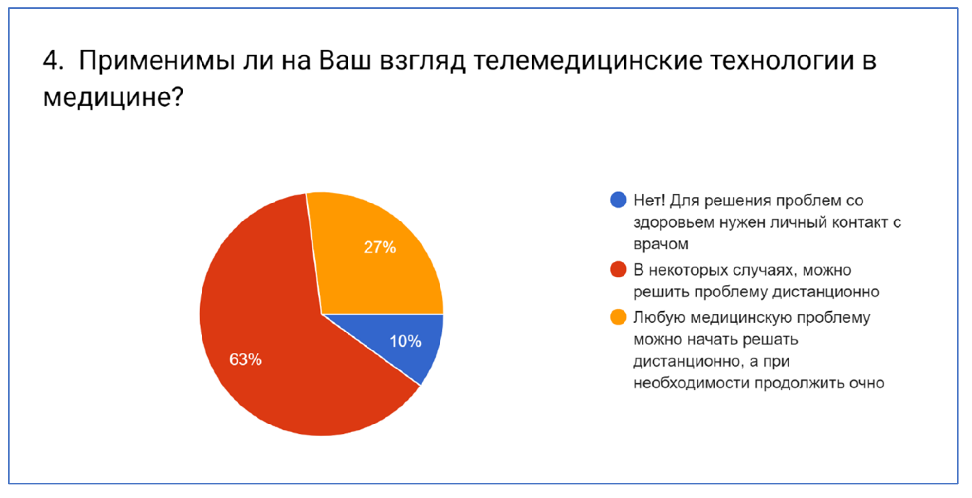 При этом общее отношение пациентов к телемедицине – очень позитивное. Только 10% считает, что для решения вопросов со здоровьем нужен личный контакт с врачом, а четверть опрошенных готовы в любой ситуации начинать с телемедицинского взаимодействия.