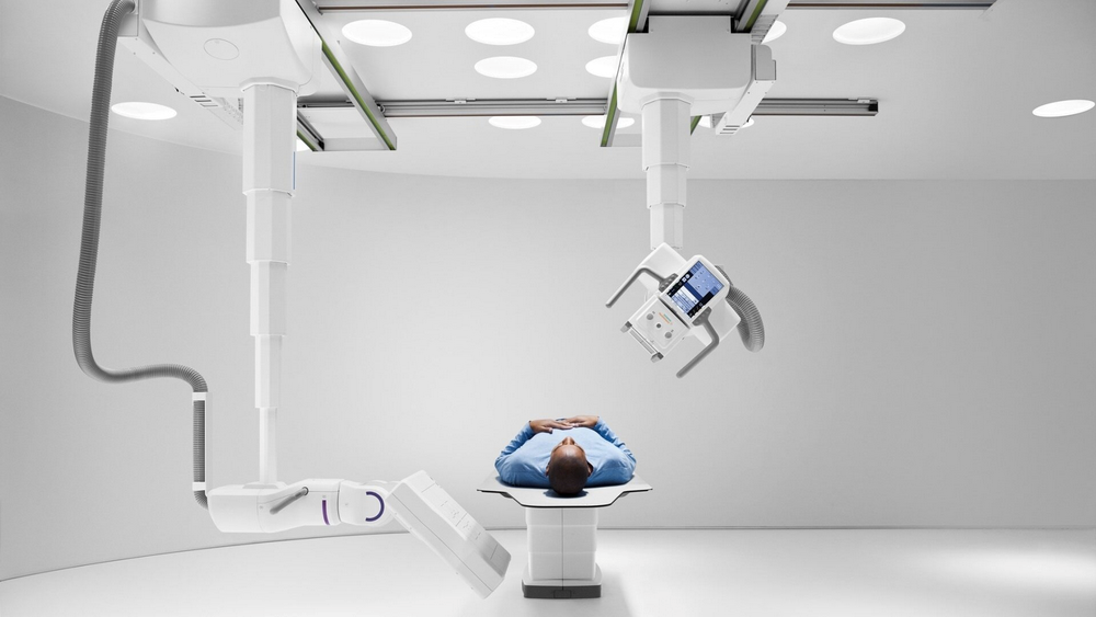 Робот-диагност — это оборудование компани "Siemens" . Роботом является весь комплект, который располагается относительно стола и под различными углами может выполнять сканирование в различных плоскостях, не поворачивая человека, и получать снимки.