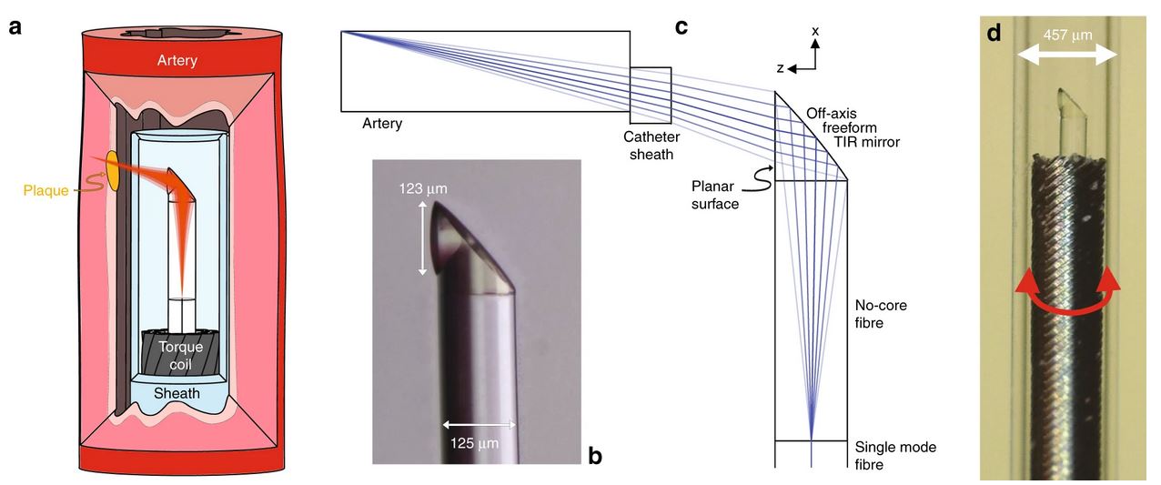 Международная команда ученых из университета Аделаиды и университета Штутгарта использовала 3D-микропечать для разработки самого маленького и гибкого в мире устройства для получения изображений изнутри кровеносных сосудов. Устройство, похожее на камеру, может быть вставлено в кровеносные сосуды для получения высококачественных трехмерных изображений, которые помогут ученым лучше понять причины сердечного приступа и прогрессирования сердечных заболеваний, а также могут привести к улучшению лечения и профилактики.