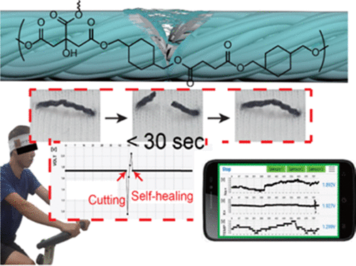 Команда ученых из Южной Кореи разработала инновационную технологию для создания сенсоров контроля параметров здоровья, которые изготавливаются из гибких нитей, способных самостоятельно восстанавливаться при повреждениях. Эти тканеобразные нити, изготовленные из электродов из углеродного волокна, покрытых полимером на основе лимонной кислоты, могут измерять концентрацию электролита в поте.