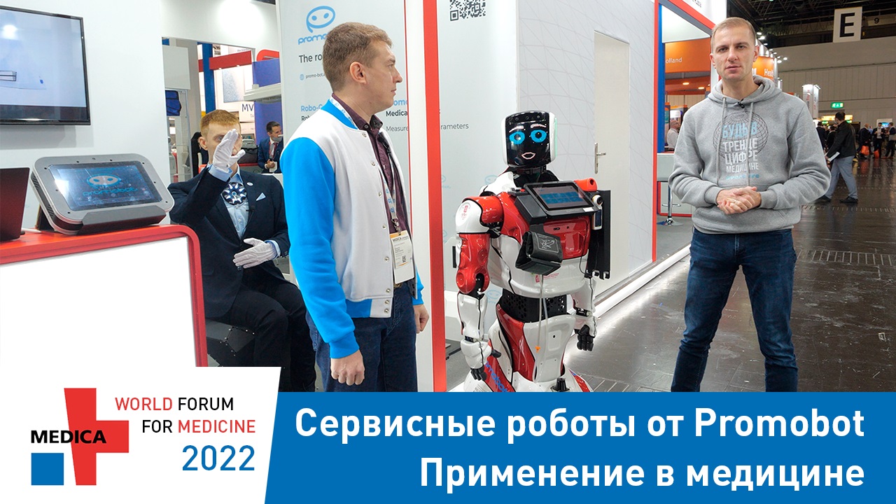 Российская компания Promobot представила на выставке своих сервисных роботов, которые могут использоваться в различных сферах нашей жизни, в том числе и в здравоохранении. Сегодня уже существует несколько версий роботизированной системы компании, которые предназначены для различных задач. Разработанный специалистами компании робот общается с помощью искусственного интеллекта и самостоятельно передвигается, объезжая препятствия. Робот сам встаёт на зарядку, когда понимает, что заряд на исходе. Его не нужно постоянно контролировать.