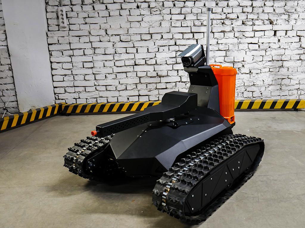 Еще одна разработка компании Promobot - удаленно управляемый дезинфекционный робот, отличающийся высокой производительностью. Эта версия робота оборудована резервуаром с дезинфицирующей жидкостью и распылителем. Устройство способно безопасно передвигается по помещениям или местности с помощью ультразвуковых датчиков и системы GPS/ГЛОНАСС и преодолевает препятствия — лестницы, бордюры и другие объекты.