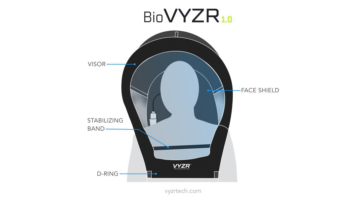 Шлем BioVYZR в виде большого прозрачного чехла герметизирует голову владельца и использует маленький вентилятор для циркуляции воздуха через фильтр N95, который используется в популярных медицинских масках. Компания уже разработала прототип этого устройства и, по ее словам, один шлем обойдется покупателю в 171 доллар.