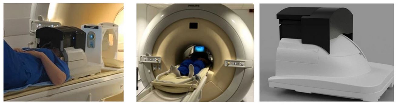 Ученые разработали VR-гарнитуру, совместимую с МРТ и полностью блокирующую любой периферийный свет, помогая пользователю забыть о своем окружении. Система также ловко маскирует шум и вибрации, исходящие от томографа, выдавая их за происшествия в виртуальном мире, такие как, например, шум и вибрации от строительных работ.