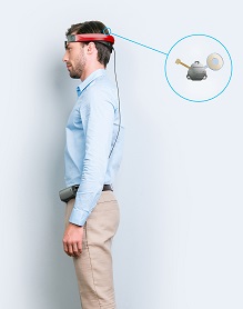 - Пользователь надевает на голову обруч с двумя камерами, которые сканируют изображение в режиме реального времени, заменяя работу глаз.