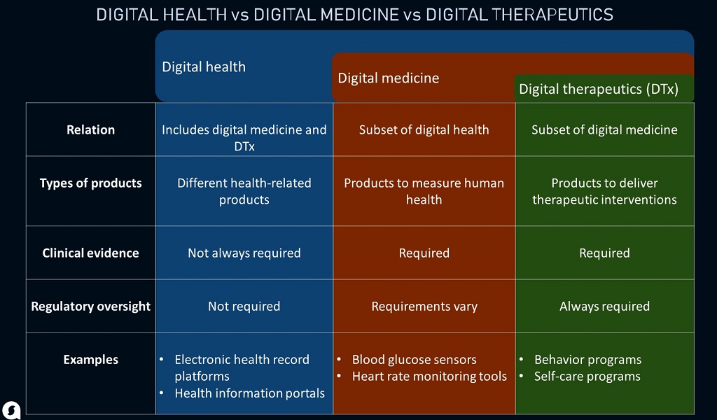 Цифровая терапия — это научно обоснованные терапевтические вмешательства, основанные на высококачественном программном обеспечении, направленные на профилактику, контроль или лечение медицинских расстройств или заболеваний. DTx — это совершенно новый путь лечения, который требует развития некоторой привычки: мы посещаем магазины приложений в дополнение к аптеке и используем свои смартфоны вместе с таблетками, а иногда и вместо них. DTx имеет свой уникальный потенциал и проблемы, начиная с возможностей автоматического мониторинга в режиме реального времени, более высокой приверженности к лечению и заканчивая наличием цифровых барьеров и вопросами безопасности данных.