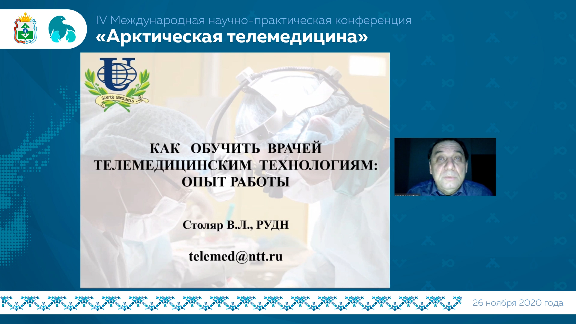 26 ноября 2020 года в онлайн формате состоялась IV Международная научно-практическая конференция «Арктическая телемедицина». Целью конференции было обсуждение вопросов использования информационных технологий для обеспечения доступности и качества медицинской помощи в условиях Крайнего Севера (Арктической зоны).