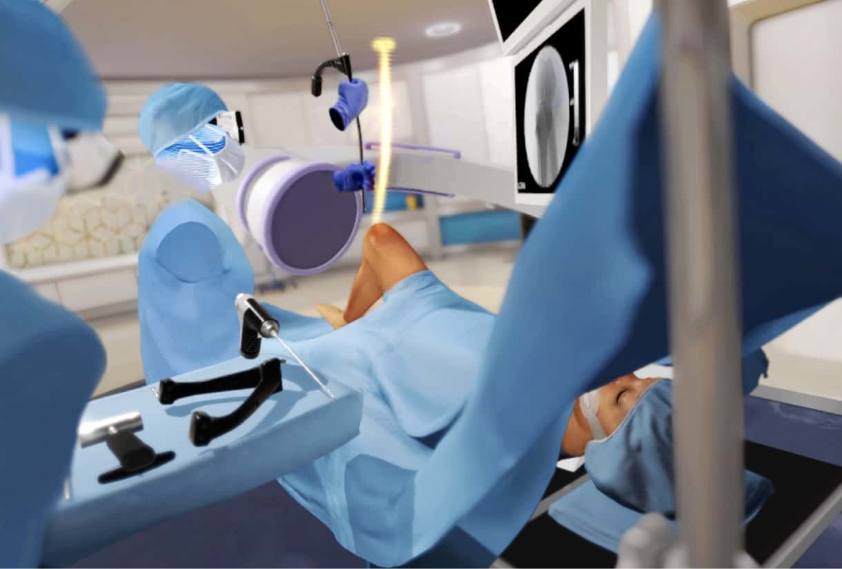 Затем с помощью гарнитуры трехмерные навигационные данные проецируются на сетчатку глаза хирурга, позволяя ему одновременно смотреть на пациента и видеть навигационные данные, не отвлекая глаз на удаленный экран во время процедуры.